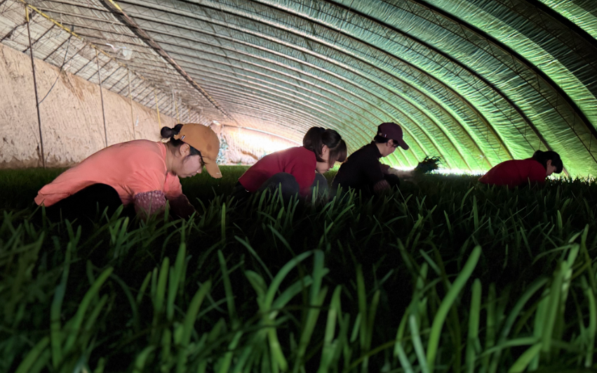 如今,韭菜產(chǎn)業(yè)已成為郝家橋鎮(zhèn)農(nóng)民增收的“搖錢樹”。全鎮(zhèn)韭菜種植總面積達(dá)1.62萬畝,其中露地韭菜0.25萬畝,年生產(chǎn)韭菜3.24萬噸,實(shí)現(xiàn)總產(chǎn)值1.68億元,戶均年增純收入3.65萬元?!白?016年建棚以來,韭菜產(chǎn)業(yè)已發(fā)展十年,今年收購最高價(jià)格達(dá)到5元每斤?!贝笕宕逦瘯敝魅螚畛煞榻B,除冬季收割鮮韭菜外,還通過加工韭花、韭苔、韭花醬延伸產(chǎn)業(yè)鏈,旺季時(shí)能帶動周邊二三百人實(shí)現(xiàn)就近就業(yè)。